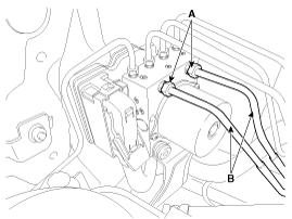 Disconnect the brake tubes (A) from the HECU by unlocking the nuts counterclockwise
