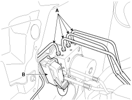 Loosen the HECU bracket nuts (A) and then remove HECU and bracket.