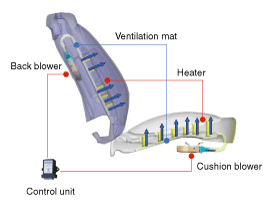The ventilated seat system uses a Push method to cool the seat. A blower mounted