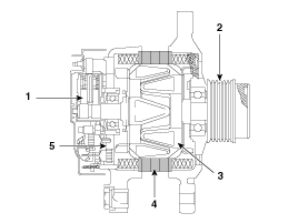 The main components of the alternator are the rotor, stator, rectifier, capacitor