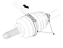 Using a plier or flat-tipped (-) screwdriver, remove the BJ boot bands