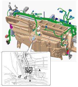 Disconnect the connector (A) and then remove the blower resistor (B)