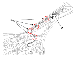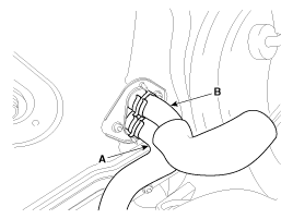 Disconnect the inlet (A) and outlet (B) heater hoses from the heater