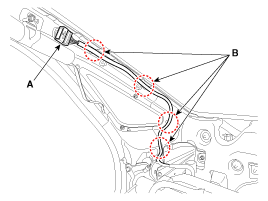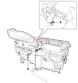 Disconnect the connector (A) and the mounting clips (B) in the front
