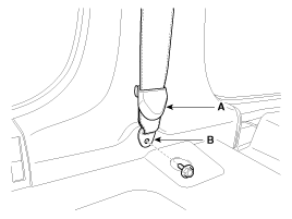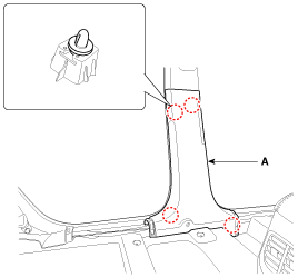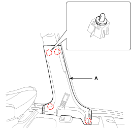 Remove the front seat belt lower anchor cover (A).