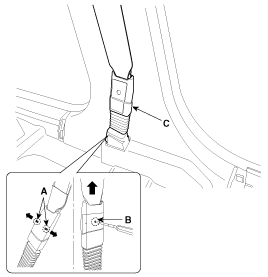 the seat belt after pushing the lock pin (B).