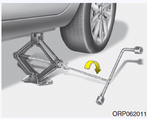 11. Lower the car to the ground by turning the wheel nut wrench counterclockwise.