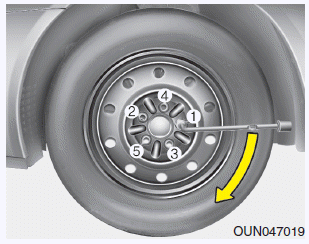 Steel wheel & aluminum alloy wheel: 11~13 kgf·m (79~94 lbf·ft)