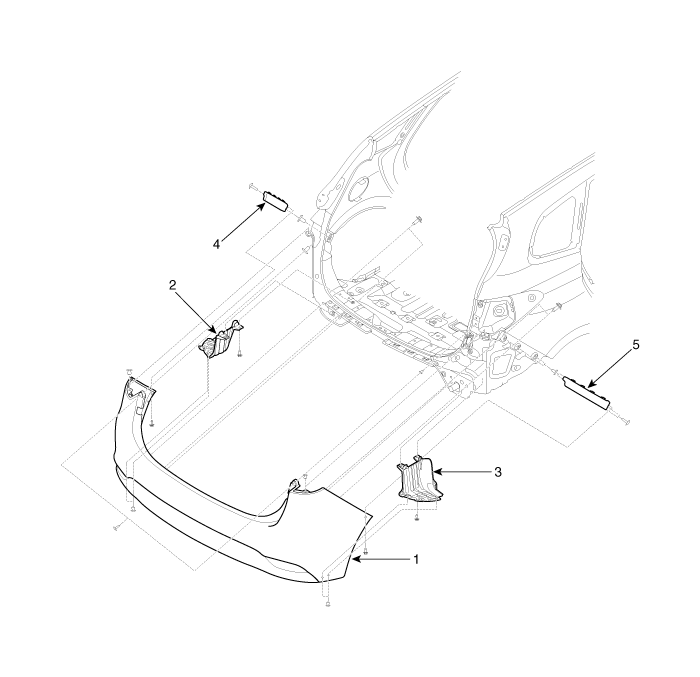 | 1. Rear bumper cover 2. Rear bunper side under cover [LH] 3. Rear bunper side under cover [RH] |