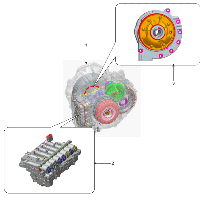 body (valves and solenoid valves). The oil pump is powered by the engine. ATF