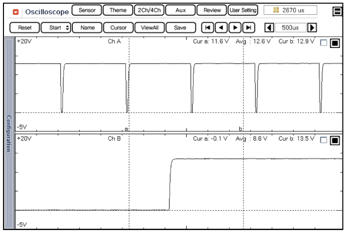 Sensor(CMPS) waveform at idle.The PCM controls the injection and ignition timing