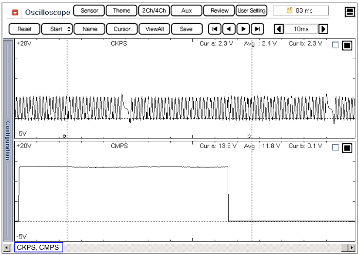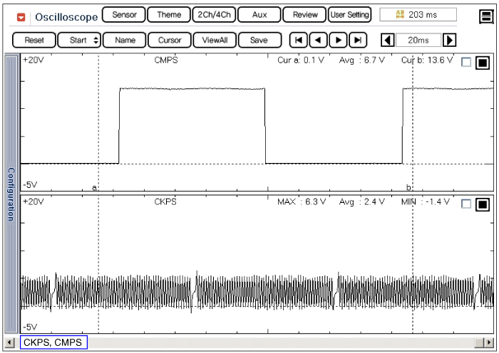 This example shows a typical Crankshaft Position Sensor (CKPS) and Camshaft