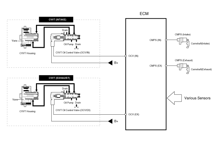 and the Cam Phaser which varies the cam phase by using the hydraulic