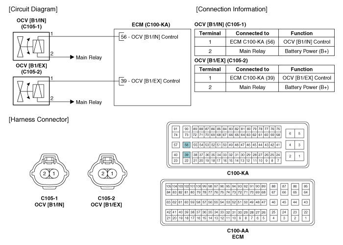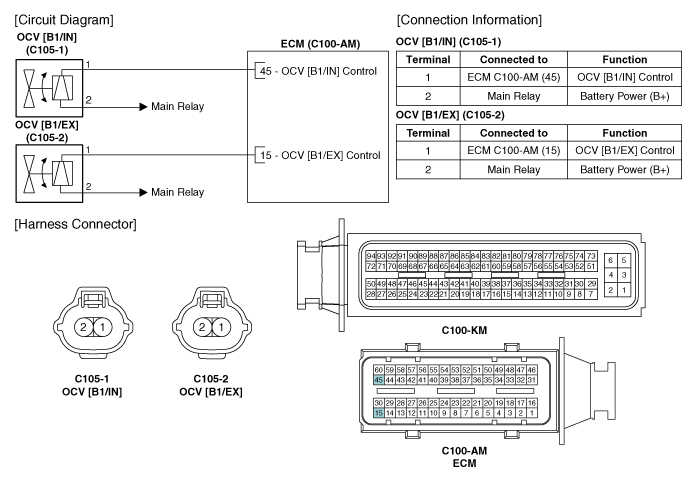 Kia Carens: Engine Control System / CVVT Oil Control Valve (OCV) Schematic diagrams