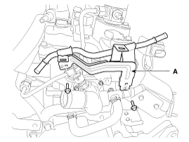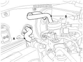Disconnect the heater hose(A) and brake booster vacuum hose(B).