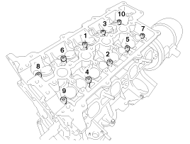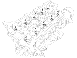 Tighten the 10 cylinder head bolts, in several passes, in the