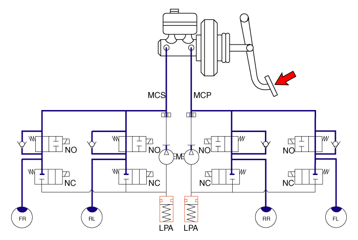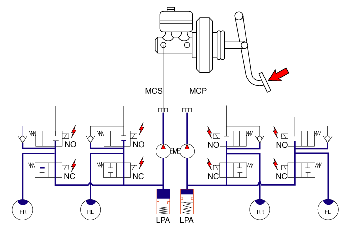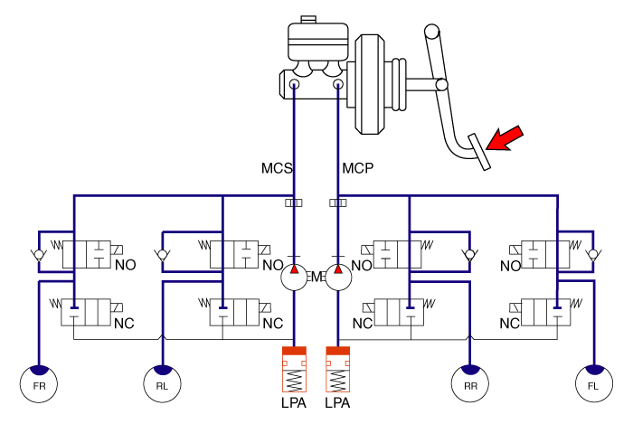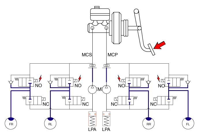 Under the emergency braking, if the wheels start to lock up, HECU sends