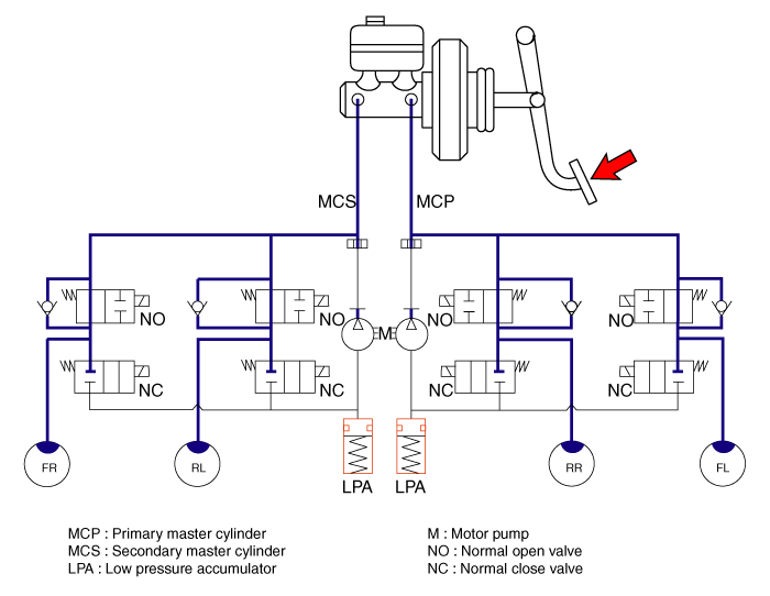 Under the normal braking, voltage is not supplied to solenoid valve,