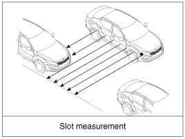 It detects the parking space. The maximum detecting range is around
