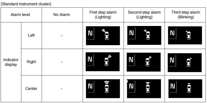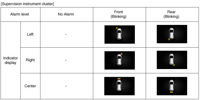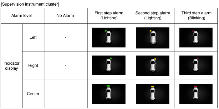 Alarm for obstacles is divided into 3 levels.