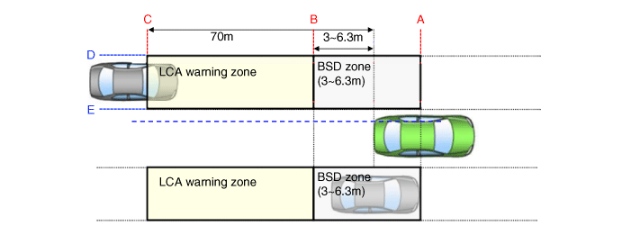 Lane Change Assist (LCA) System : Detects high speed vehicles approaching