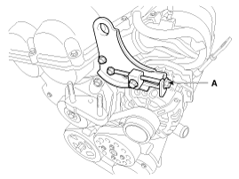 Loosen the alternator tension adjusting bolt (A) to loosen tension.