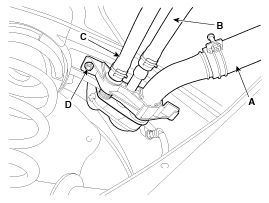 Disconnect the fuel filler hose (A), the leveling hose (B) and the ventilation