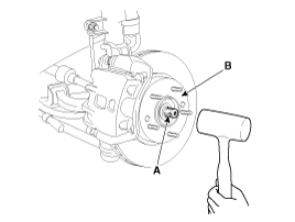 Using a plastic hammer, disconnect driveshaft (A) from the axle hub