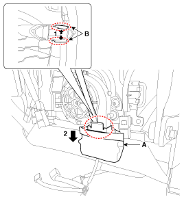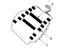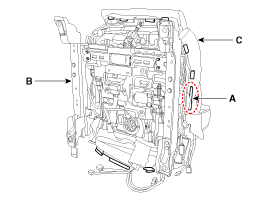 Pull out the hooks (A), and then front seat cushion cover (C) from the
