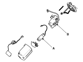 Remove the electric motor pump motor (A) from the fuel filter (B) by