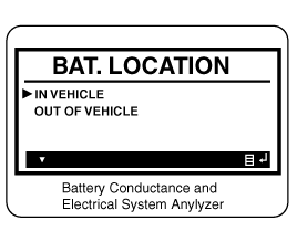 The tester will ask if the battery is connected "IN-VEHICLE" or "OUT-OF-VEHICLE".