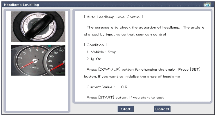 Confirm that AHLS operate forcefully in "Head lamp leveling" menu.