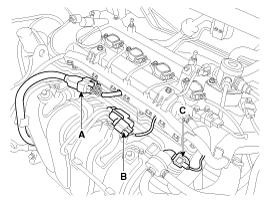 Disconnect the injector extension connector (A), the VIS (Variable intake