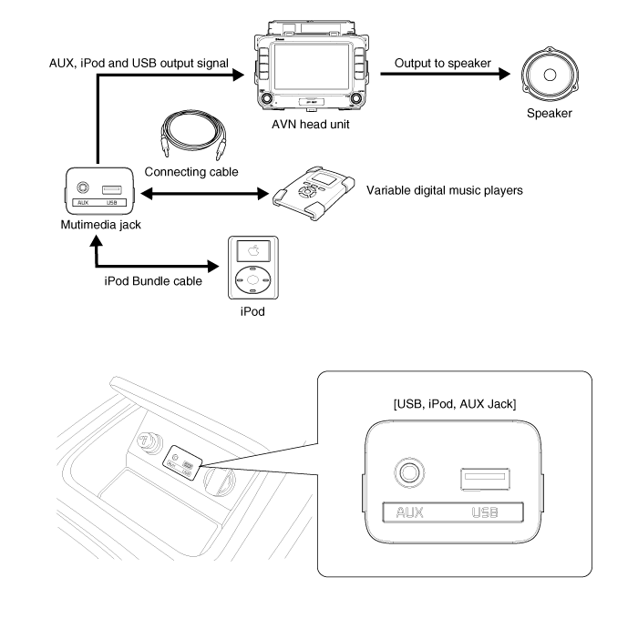 Kia Carens: AVN System / Multimedia Jack Description and operation
