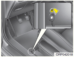 2. To open the fuel filler lid, pull up the fuel filler lid opener.