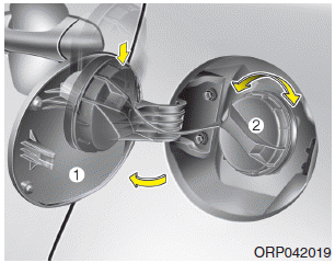 4. To remove the cap, turn the fuel tank cap (2) counterclockwise.