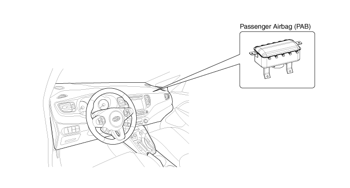The passenger airbag (PAB) is installed inside the crash pad and protects the