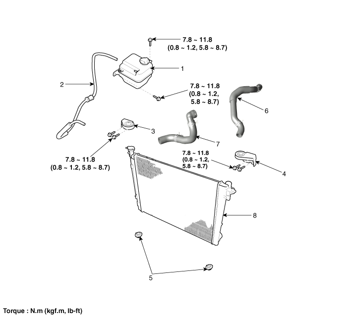 Kia Carens: Cooling System / Radiator Components and components location