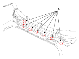 Remove the rear bumper wiring harness mounting clips (A).