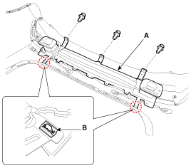 Remove the mounting clips (B), then remove the rear bumper beam assembly