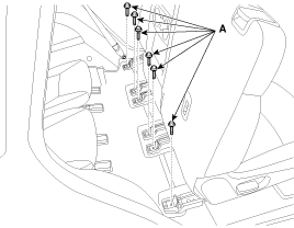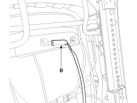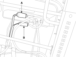 Disconnect the heater connector (A) and seat belt buckle connector (B).