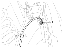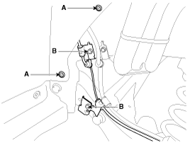 Remove the rear wheel speed sensor cable mounting bolt (B).