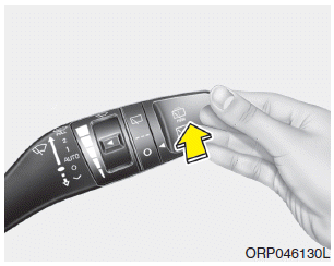 Push the lever away from you to spray rear washer fluid and to run the rear wipers