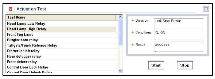 To perform functional test on SJB outputs, select "Actuation Test"