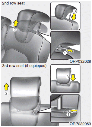 Kia Carens: Headrest (for rear seat) / Removal and installation