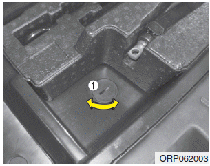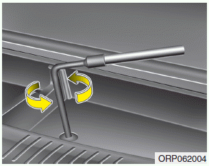 5. After the spare tire reaches the ground, continue to turn the wrench counterclockwise, and draw the spare tire outside. Never rotate the wrench excessively, otherwise the spare tire carrier may be damaged.