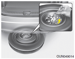 Turn the wrench counterclockwise until the spare tire reaches the ground.