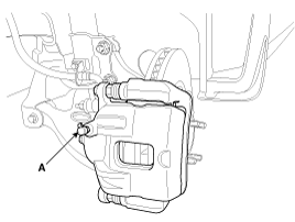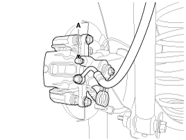 Loosen the right-rear brake bleed screw (A) to allow air to escape from