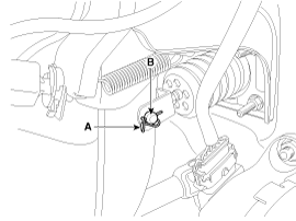 Remove the snap pin (A) and clevis pin (B).