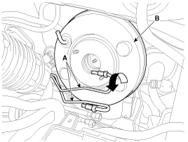 Loosen the flare nuts (A) and then remove the brake tube (B).